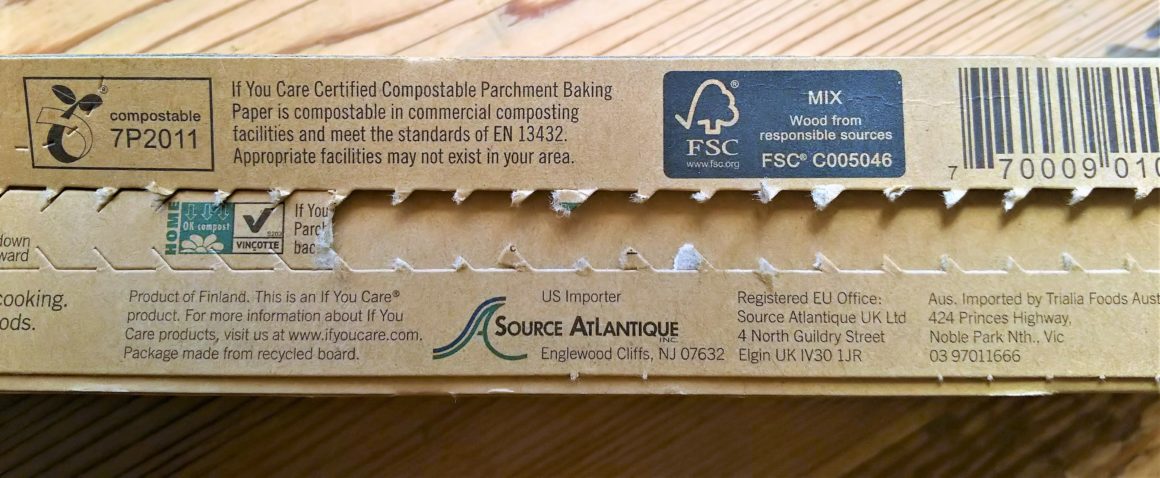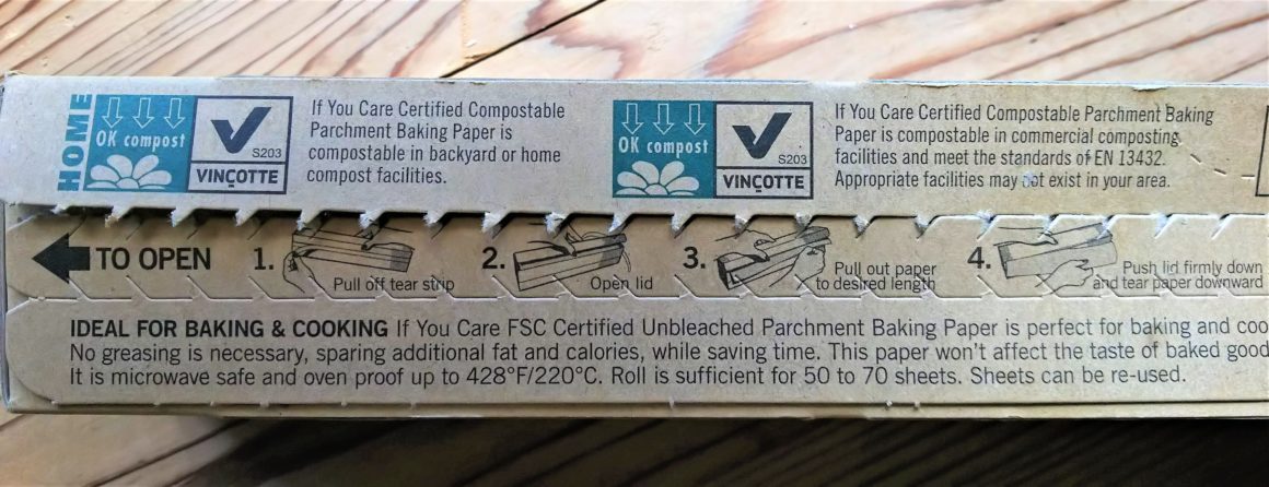 というわけで、僕はこれ、「無漂白&コンポスタブル」な使い捨てオーブンシートを(本当に必要な場合のみ)使っています。ブランド名は「IF YOU CARE(イフユーケア)」。日本でも手に入りますよ。